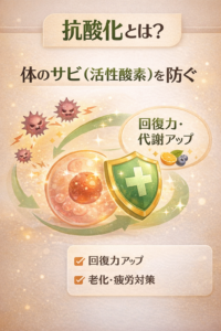 抗酸化とは、体をサビつかせる原因となる「活性酸素」の働きを抑えることです。