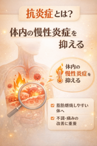 特に40代以降は、ホルモンバランスや生活習慣の影響で炎症が起こりやすくなるため、抗炎症の視点は非常に重要です。